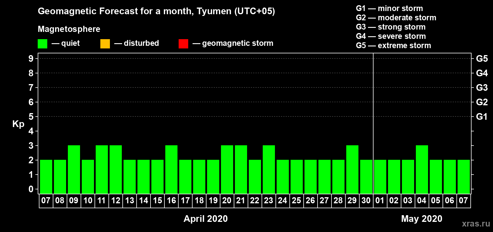 Geomagnetic activity forecast in Tyumen — Apr 07, 2020