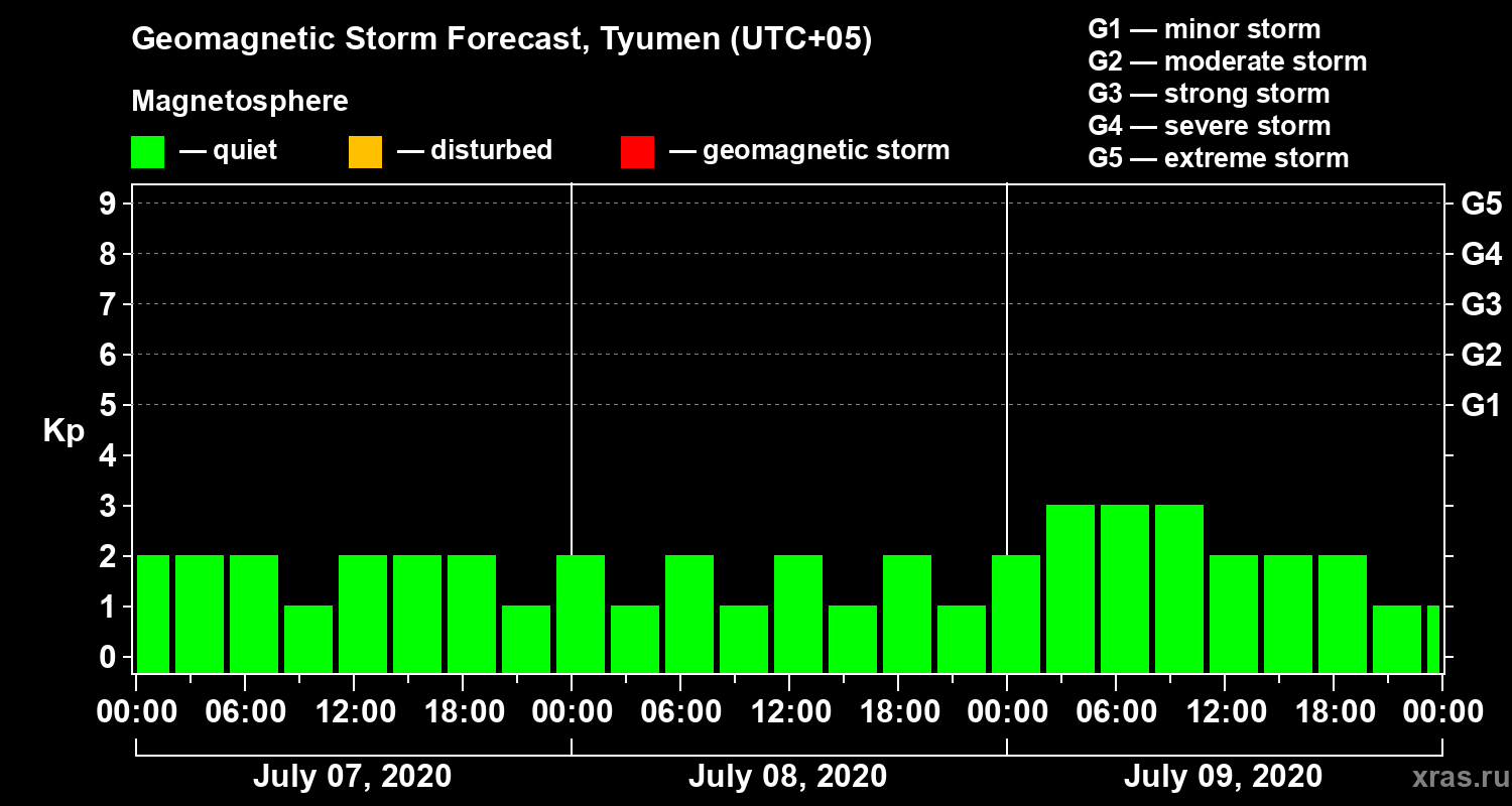 Geomagnetic storm forecast in Tyumen for Jul 07, 2020