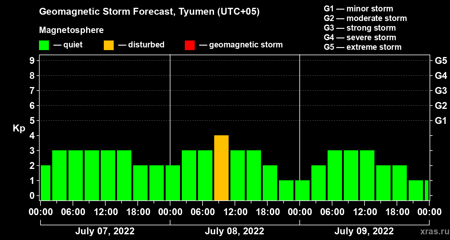 Geomagnetic activity forecast in Tyumen — Jul 07, 2022