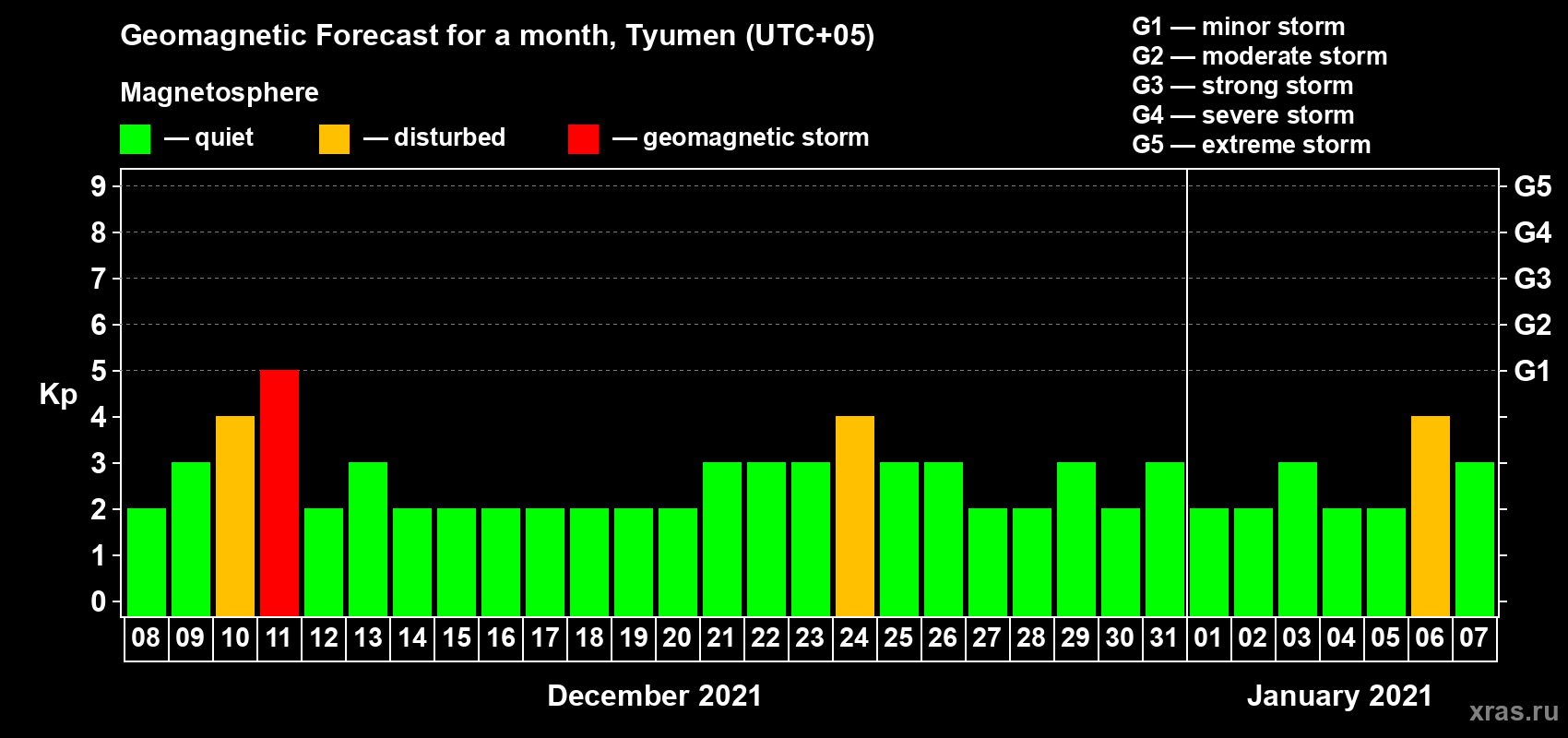 Geomagnetic activity forecast in Tyumen — Dec 08, 2020