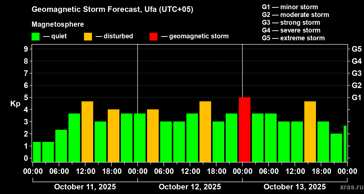Geomagnetic storm forecast in Ufa for Oct 11, 2025
