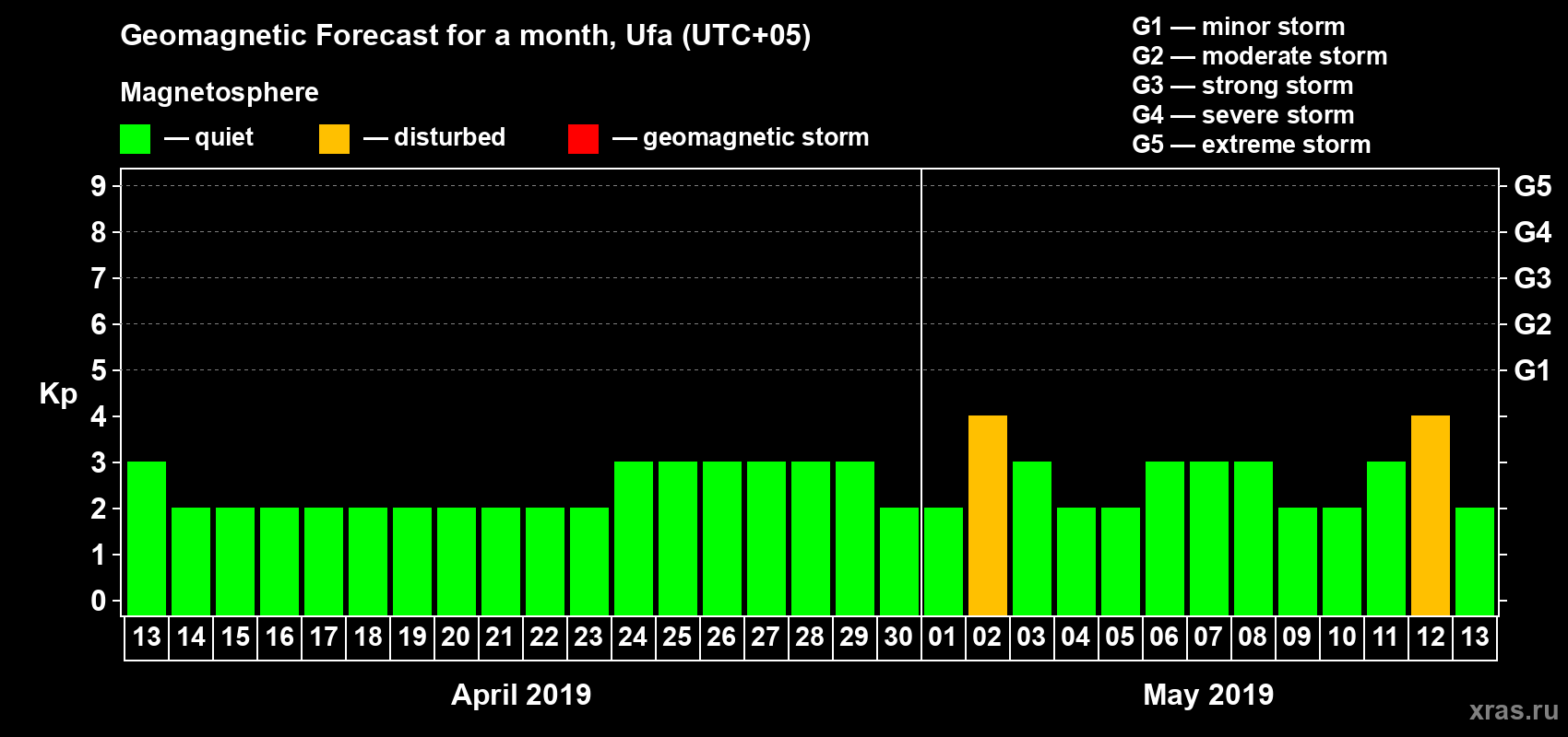 Geomagnetic activity forecast in Ufa — Apr 13, 2019