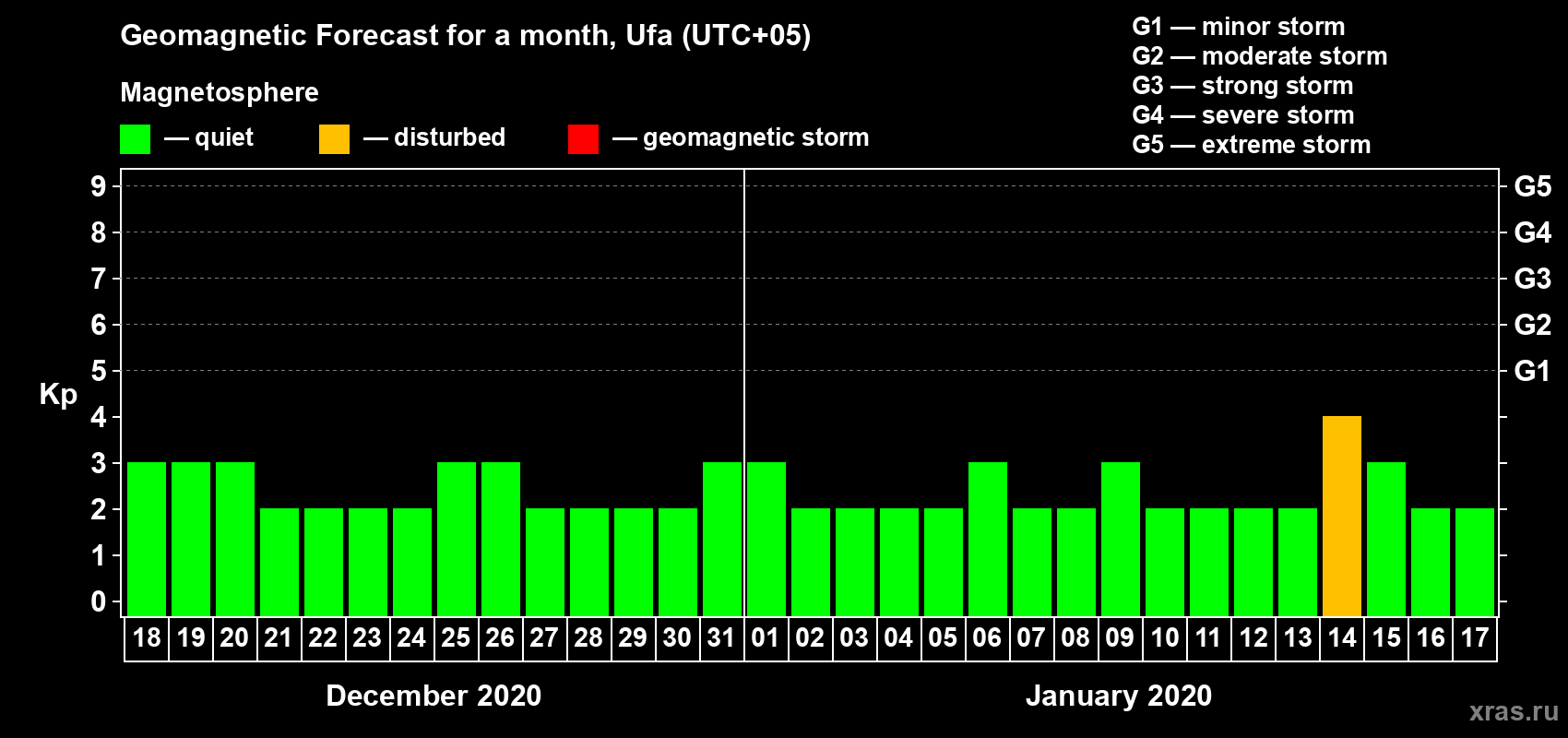 Geomagnetic activity forecast in Ufa — Dec 18, 2019
