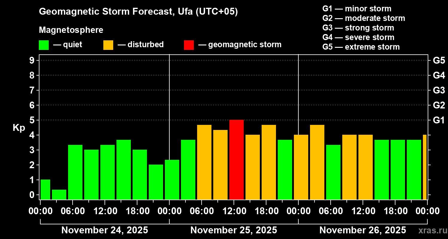 Geomagnetic storm forecast in Ufa for Nov 24, 2025