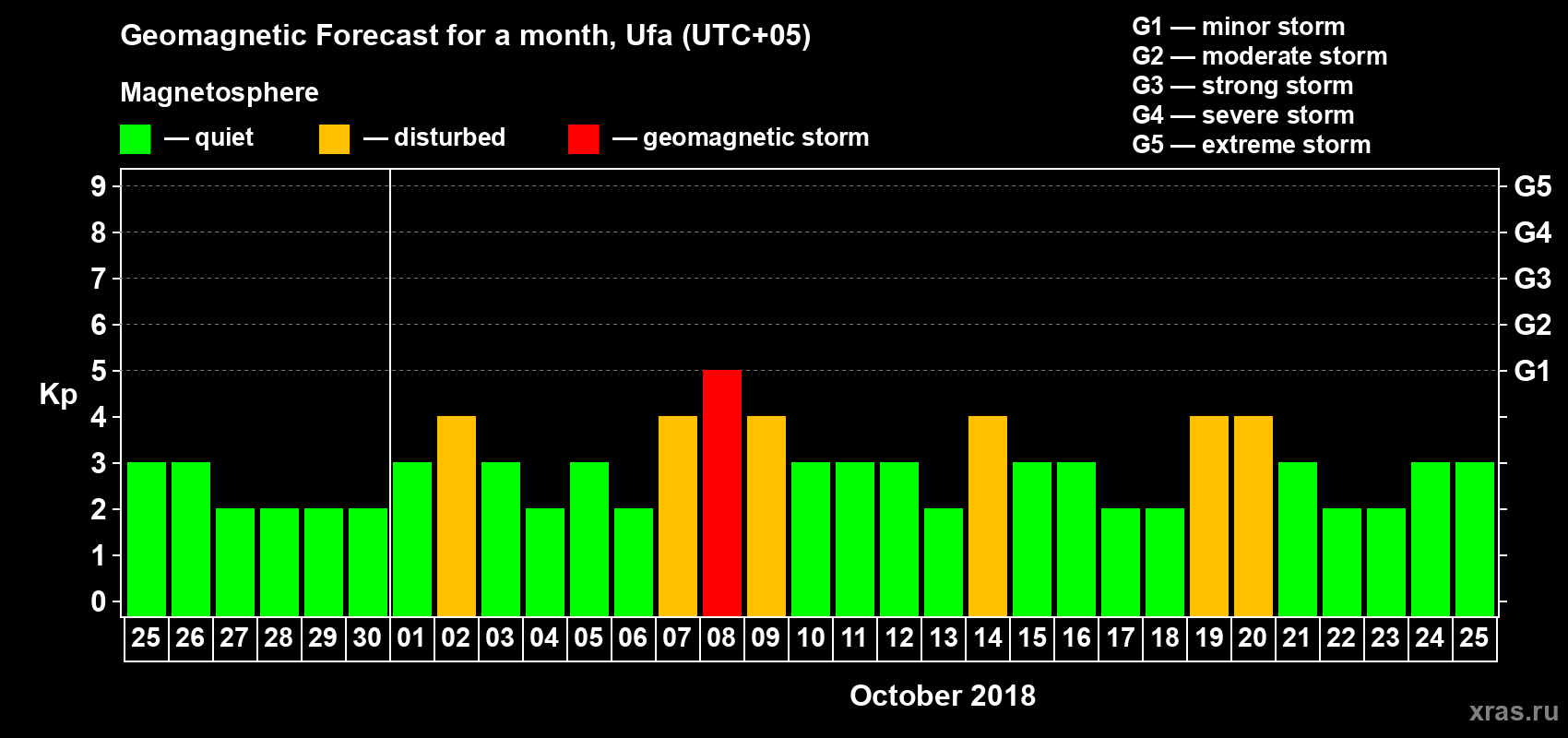 Geomagnetic storm forecast in Ufa for Sep 25, 2018