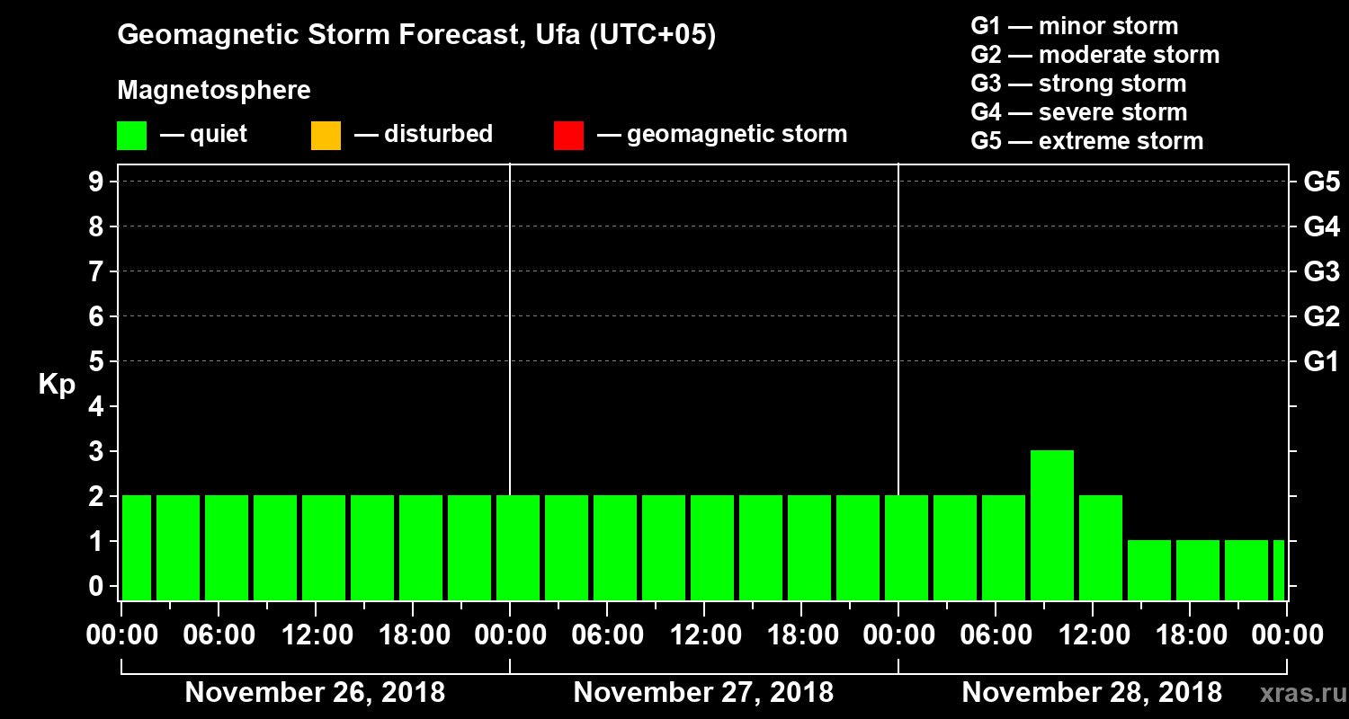 Geomagnetic activity forecast in Ufa — Nov 26, 2018