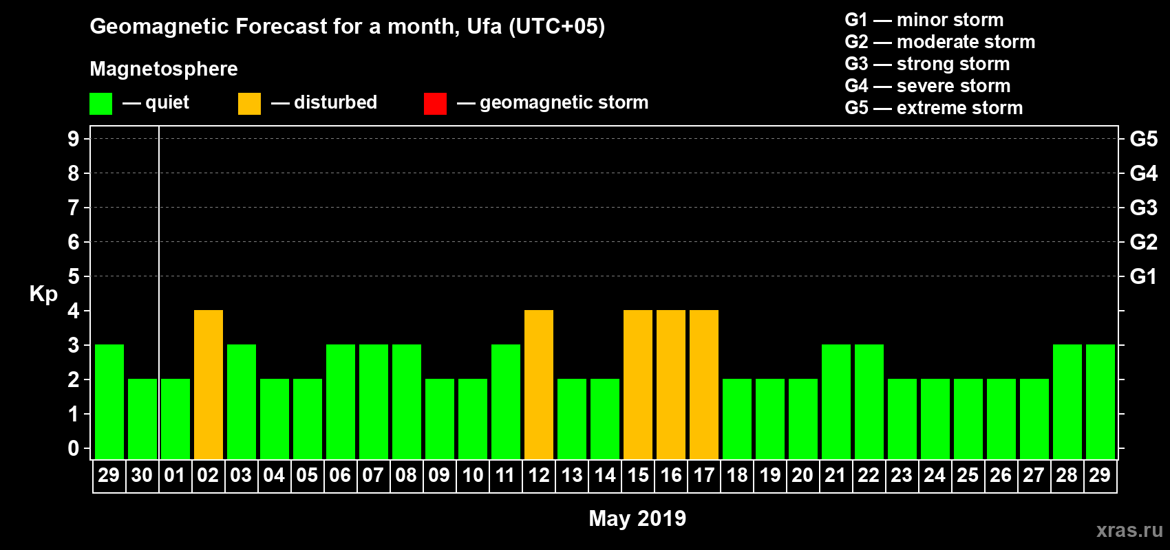 Geomagnetic storm forecast in Ufa for Apr 29, 2019