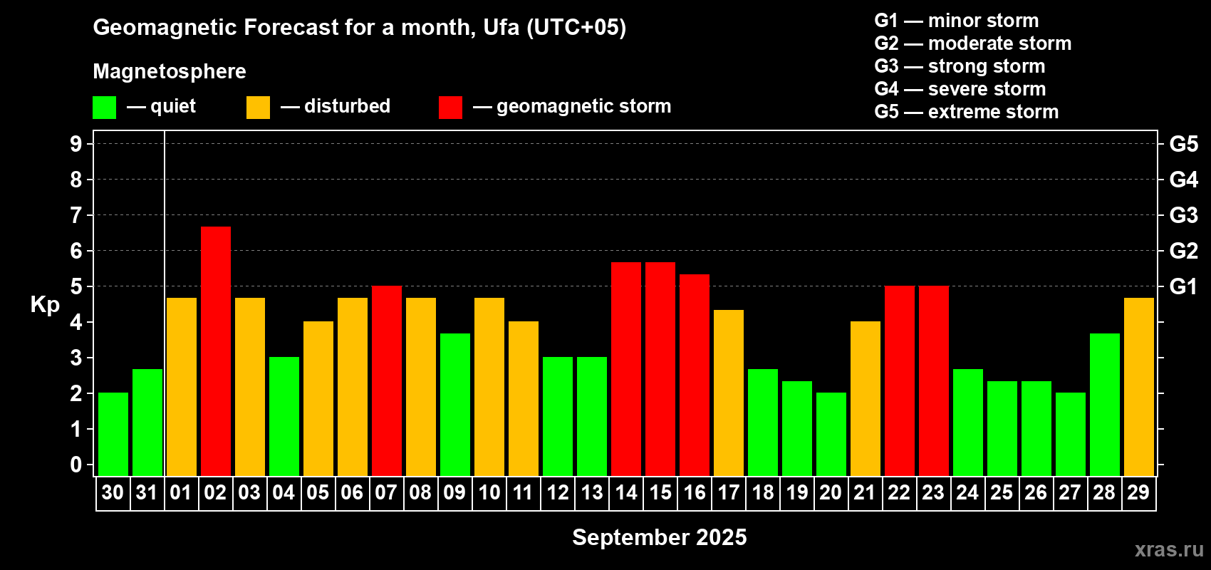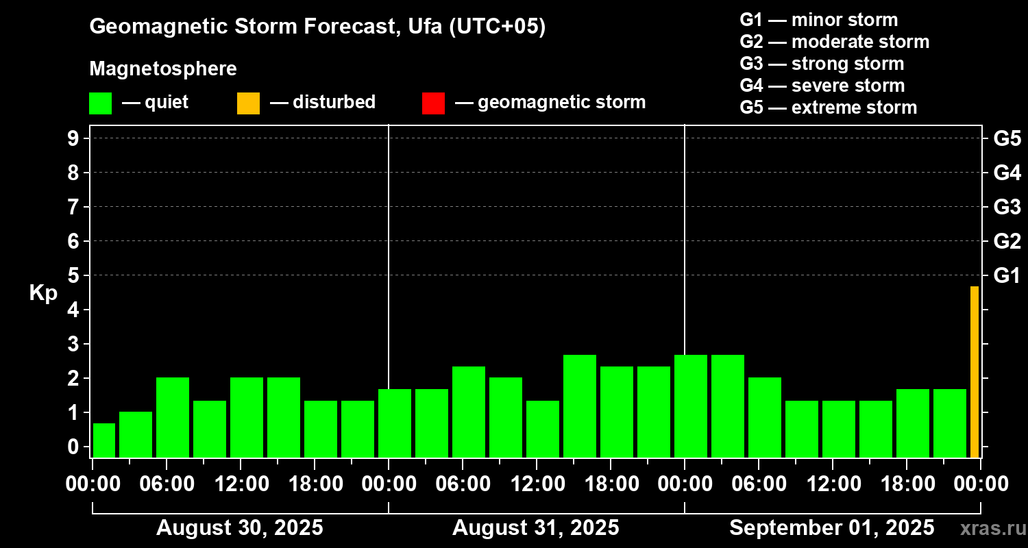 Geomagnetic storm forecast in Ufa for Aug 30, 2025