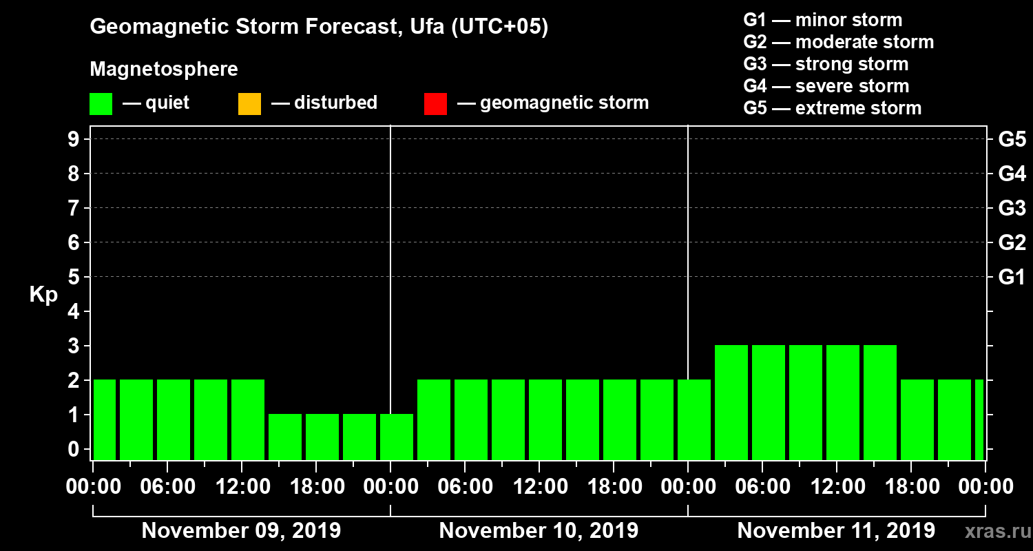 Geomagnetic activity forecast in Ufa — Nov 09, 2019