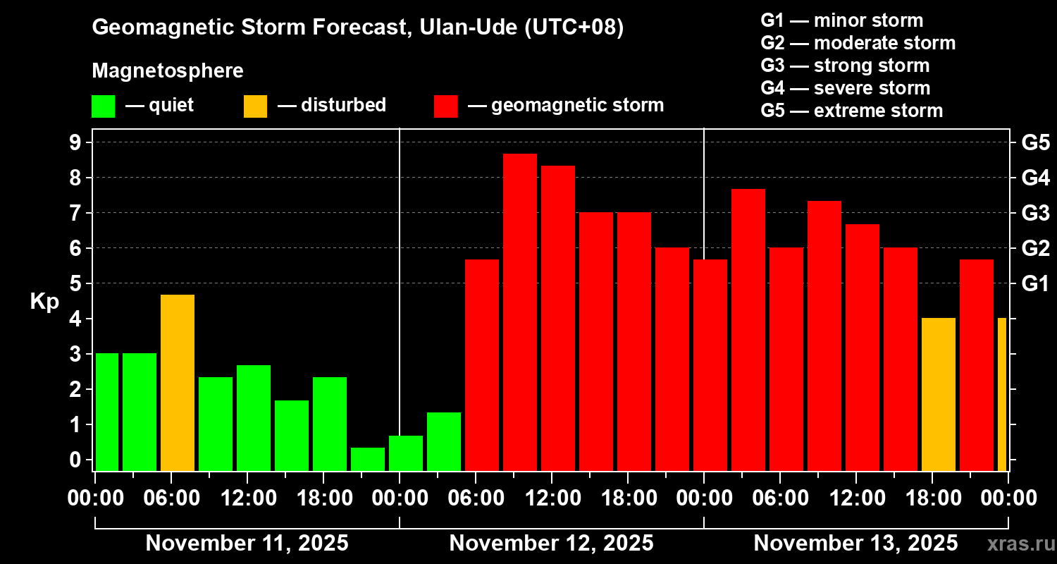 Geomagnetic storm forecast in Ulan-Ude for Nov 11, 2025