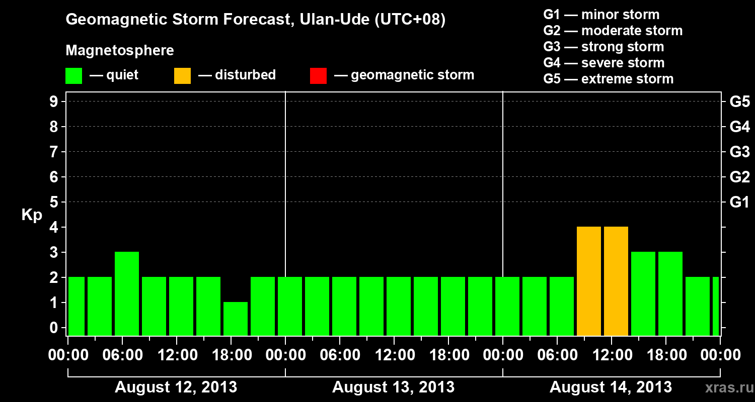 Geomagnetic storm forecast in Ulan-Ude for Aug 12, 2013