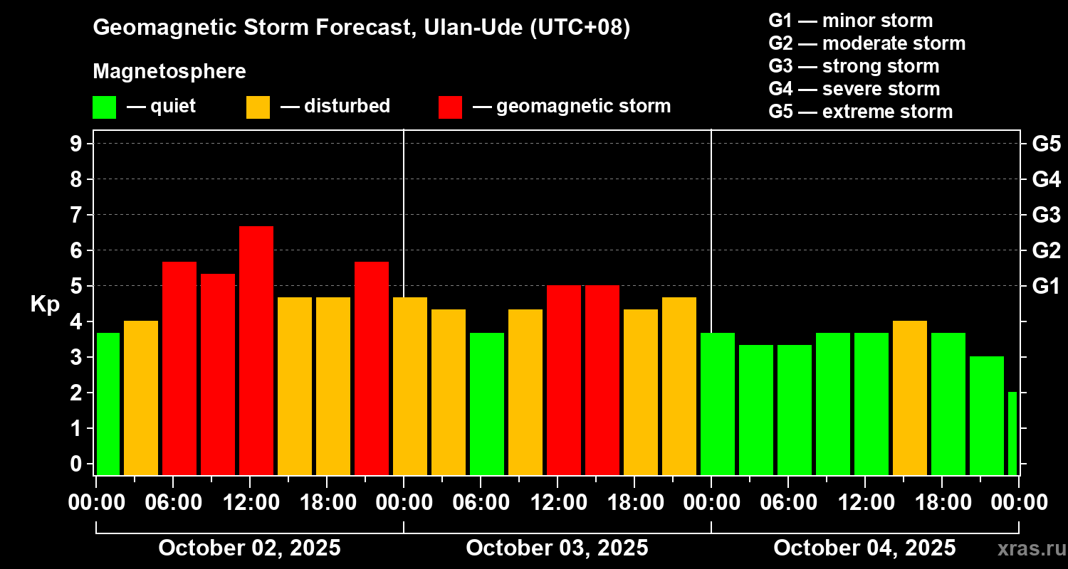 Geomagnetic storm forecast in Ulan-Ude for Oct 02, 2025