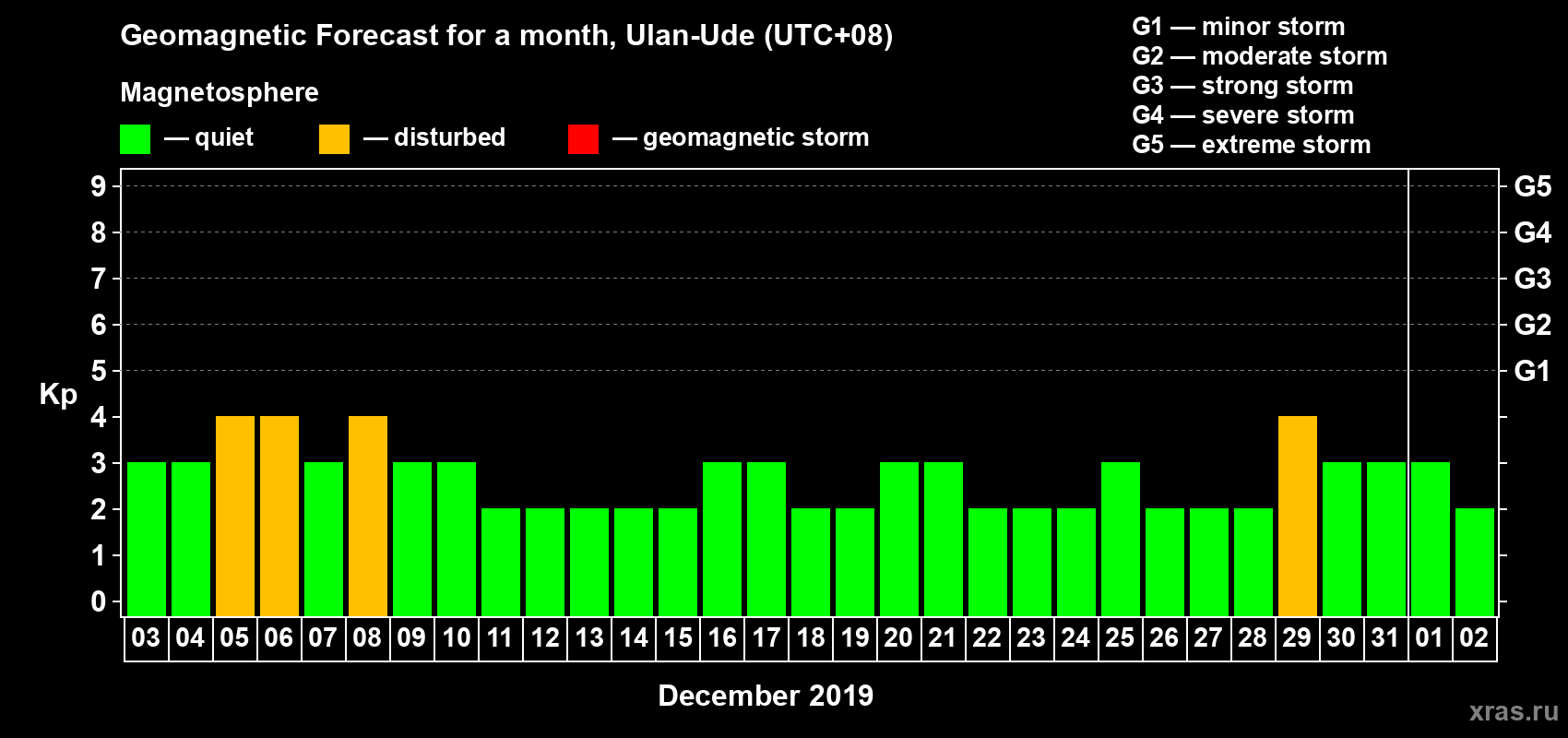 Geomagnetic activity forecast in Ulan-Ude — Dec 03, 2018