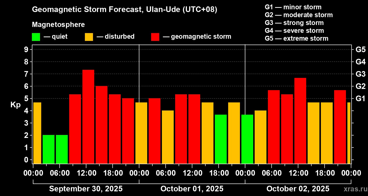Geomagnetic storm forecast in Ulan-Ude for Sep 30, 2025