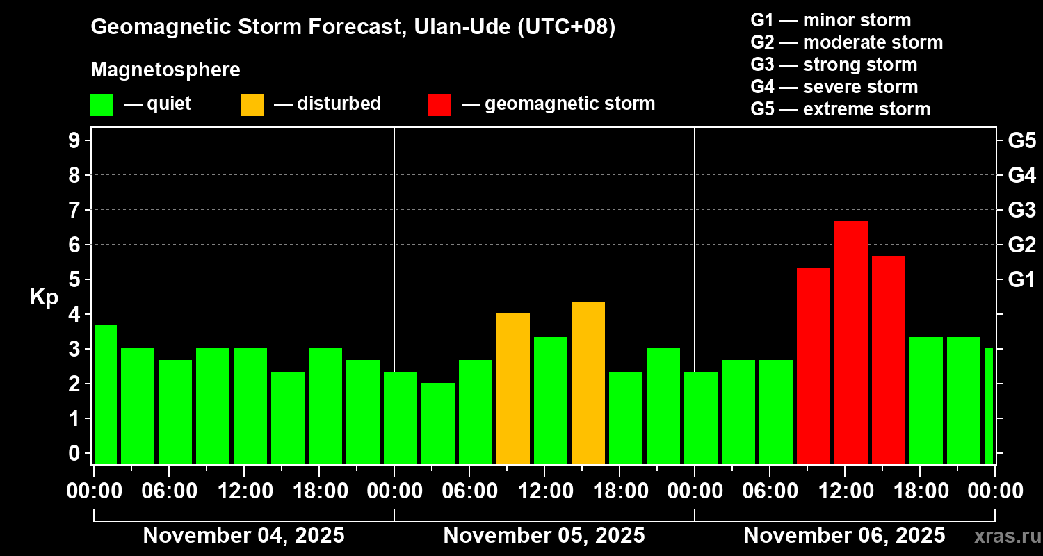 Geomagnetic storm forecast in Ulan-Ude for Nov 04, 2025