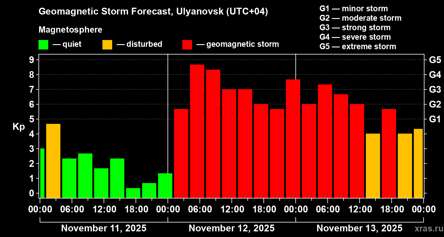 Geomagnetic storm forecast in Ulyanovsk for Nov 11, 2025