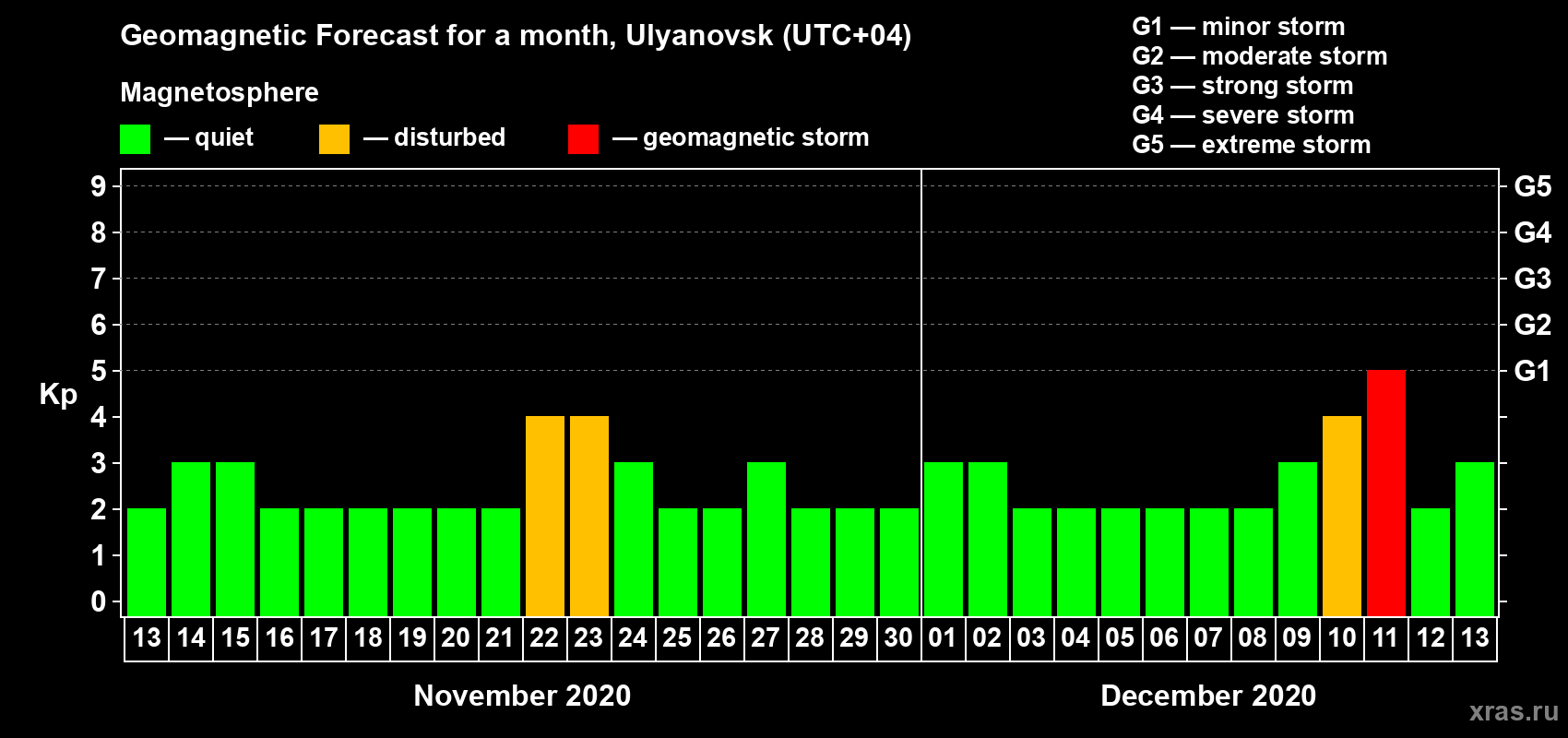 Geomagnetic activity forecast in Ulyanovsk — Nov 13, 2020