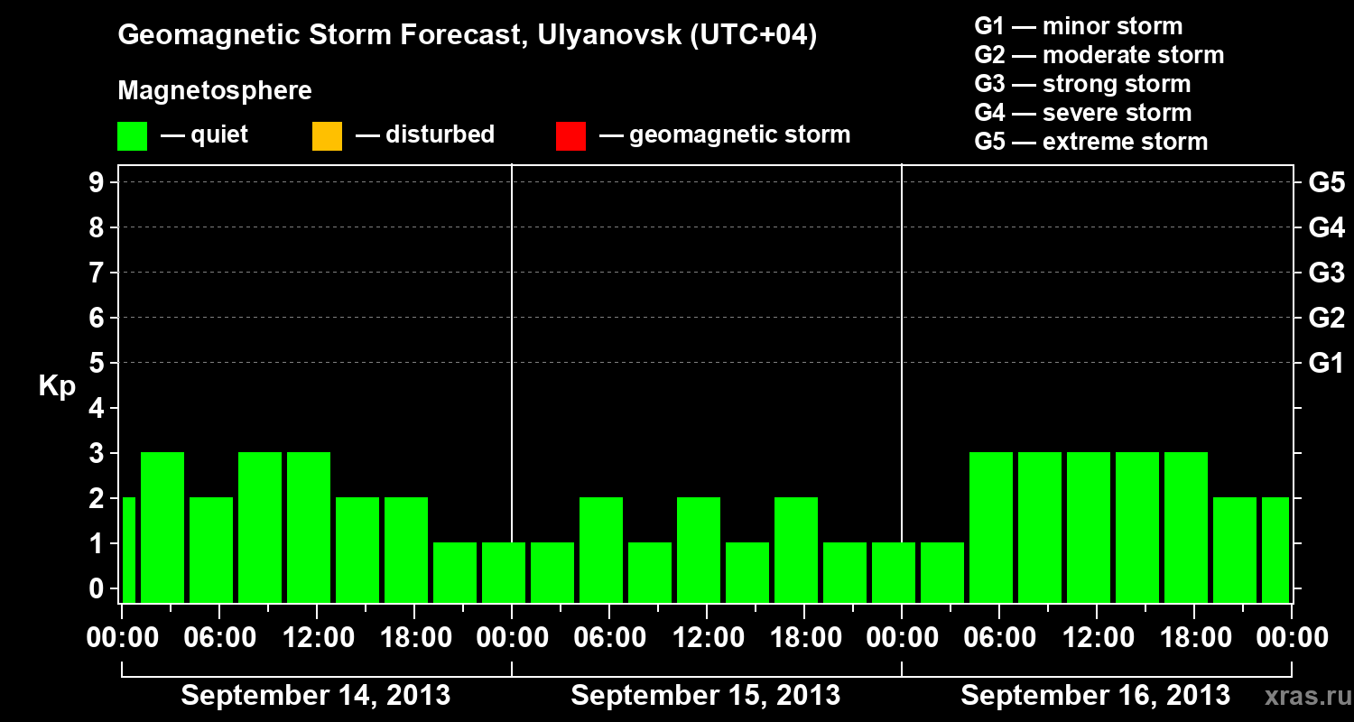 Geomagnetic storm forecast in Ulyanovsk for Sep 14, 2013