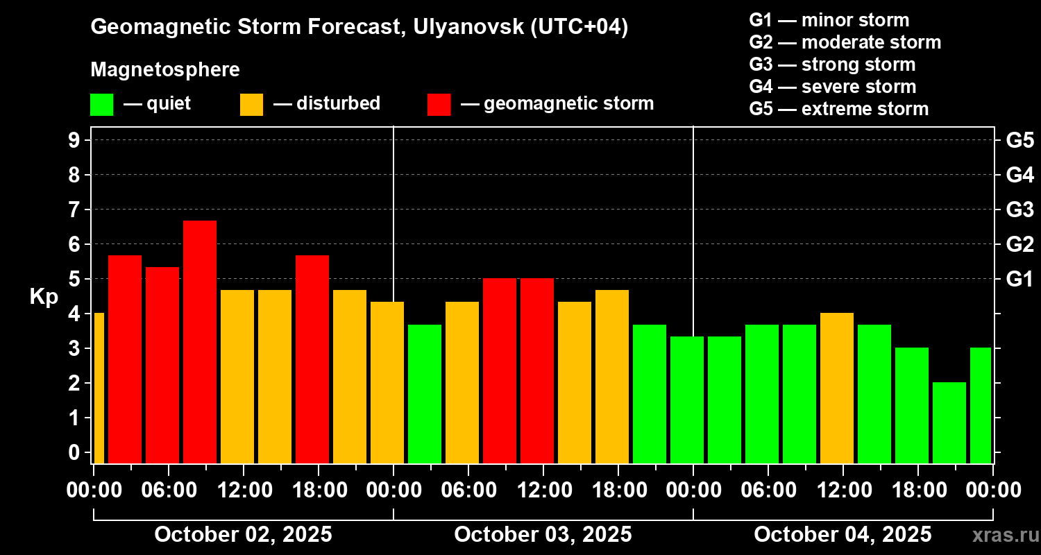 Geomagnetic storm forecast in Ulyanovsk for Oct 02, 2025