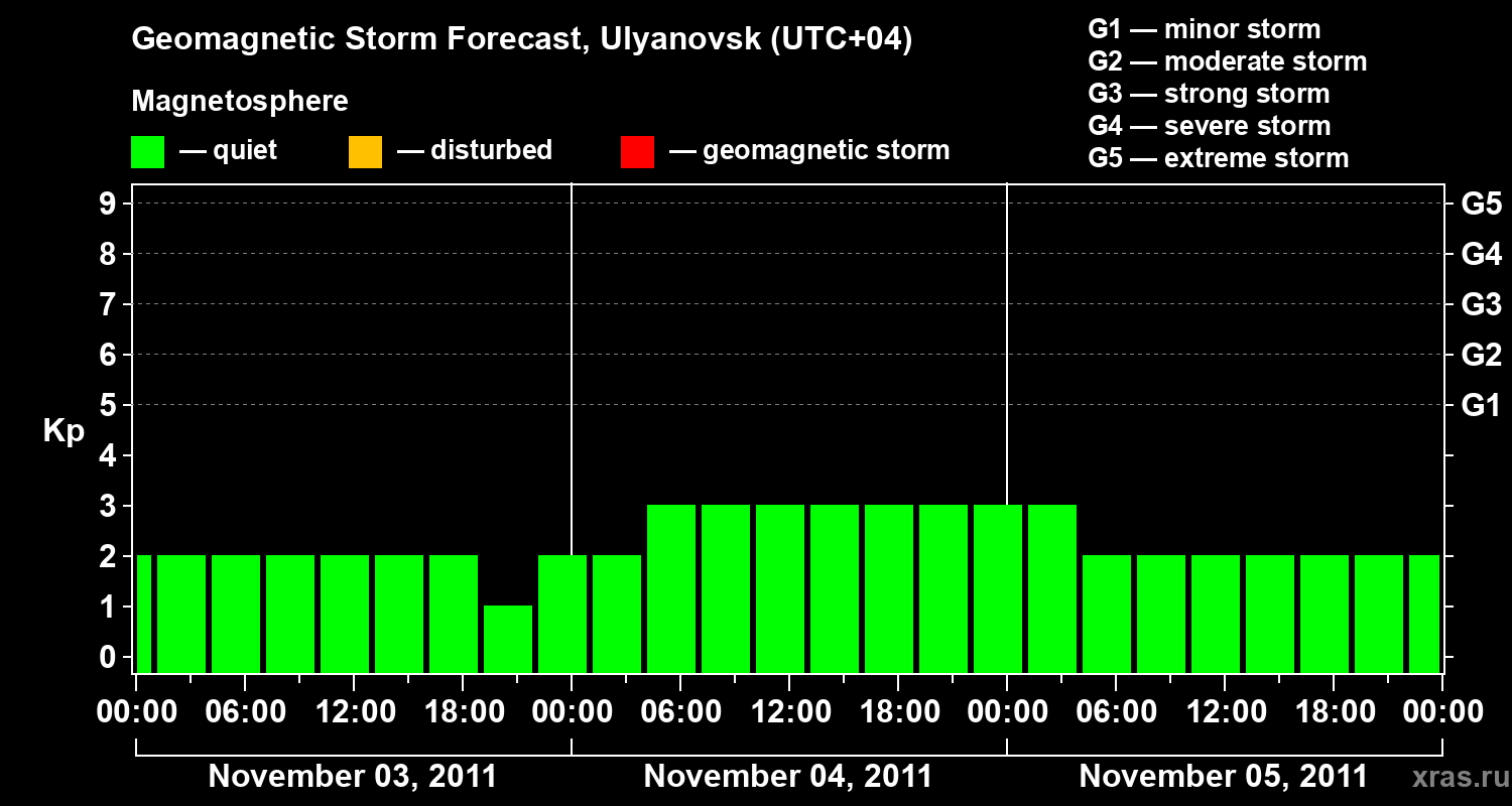 Geomagnetic storm forecast in Ulyanovsk for Nov 03, 2011