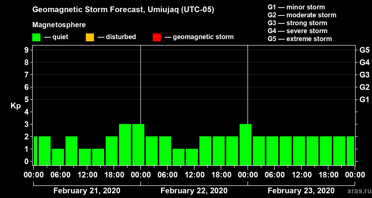 Geomagnetic storm forecast in Umiujaq for Feb 21, 2020