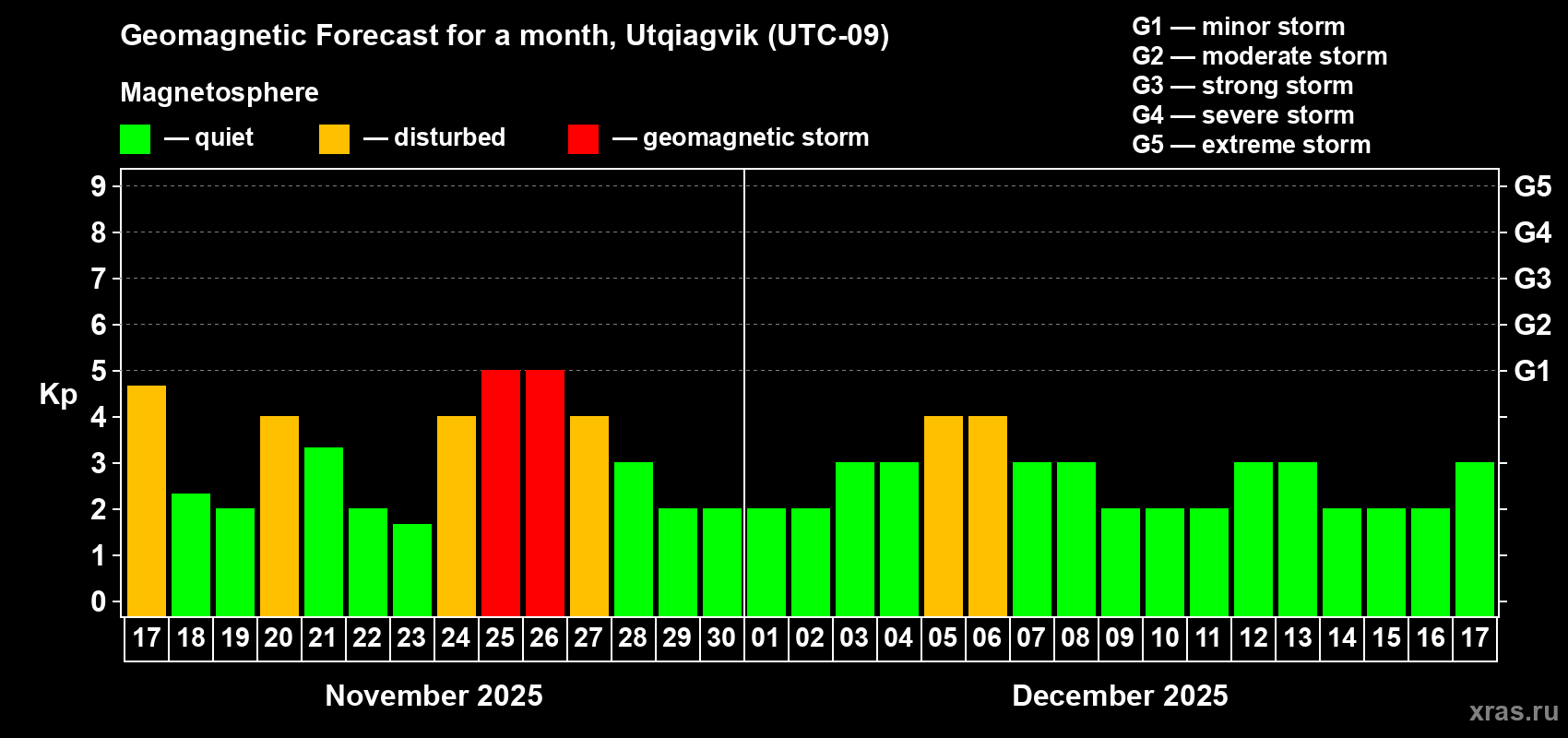 Geomagnetic storm forecast in Utqiagvik for Nov 17, 2025