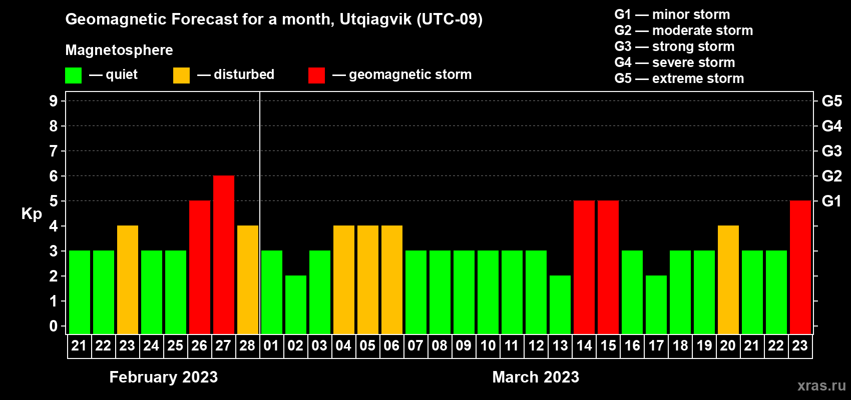 Geomagnetic storm forecast in Utqiagvik for Feb 21, 2023