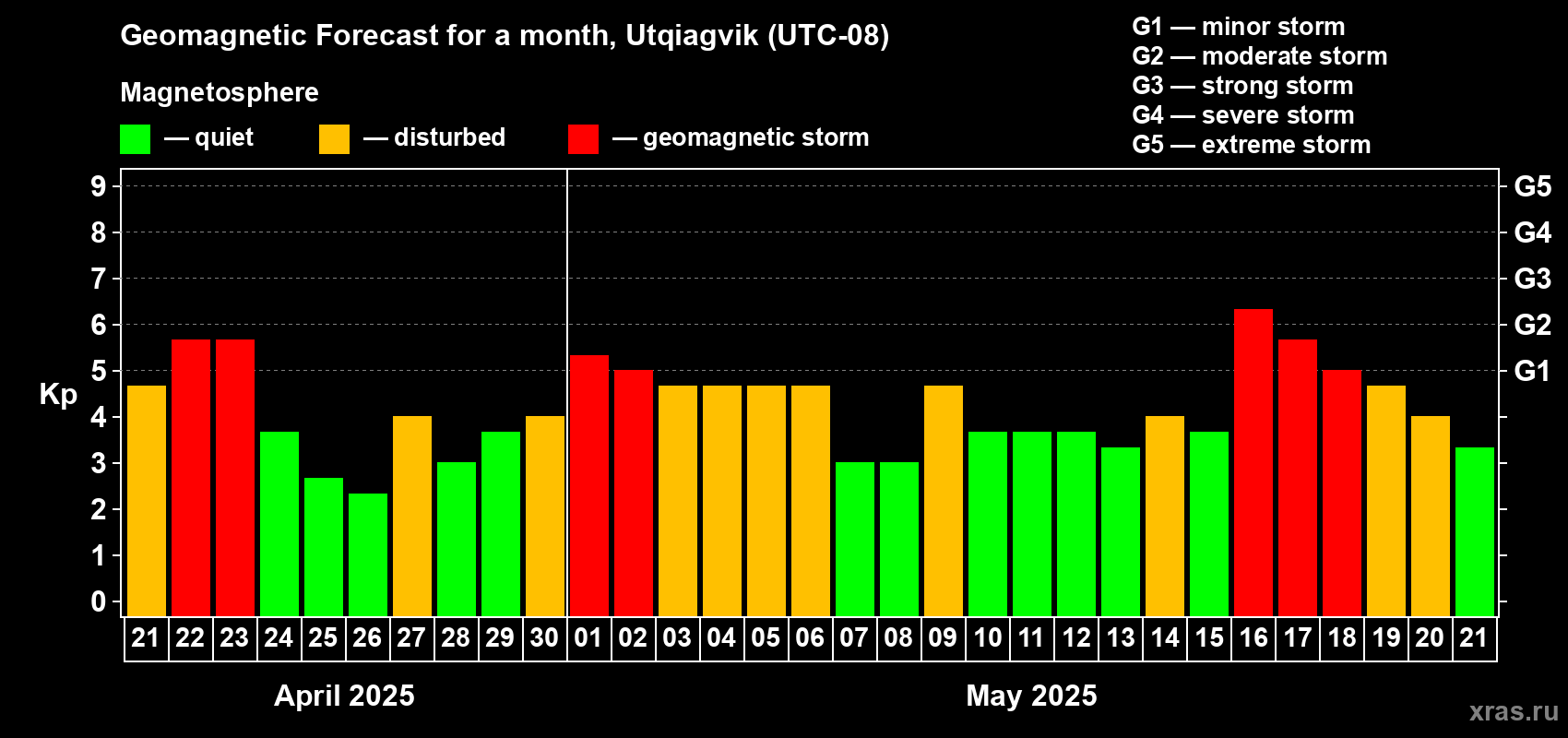Geomagnetic storm forecast in Utqiagvik for Apr 21, 2025