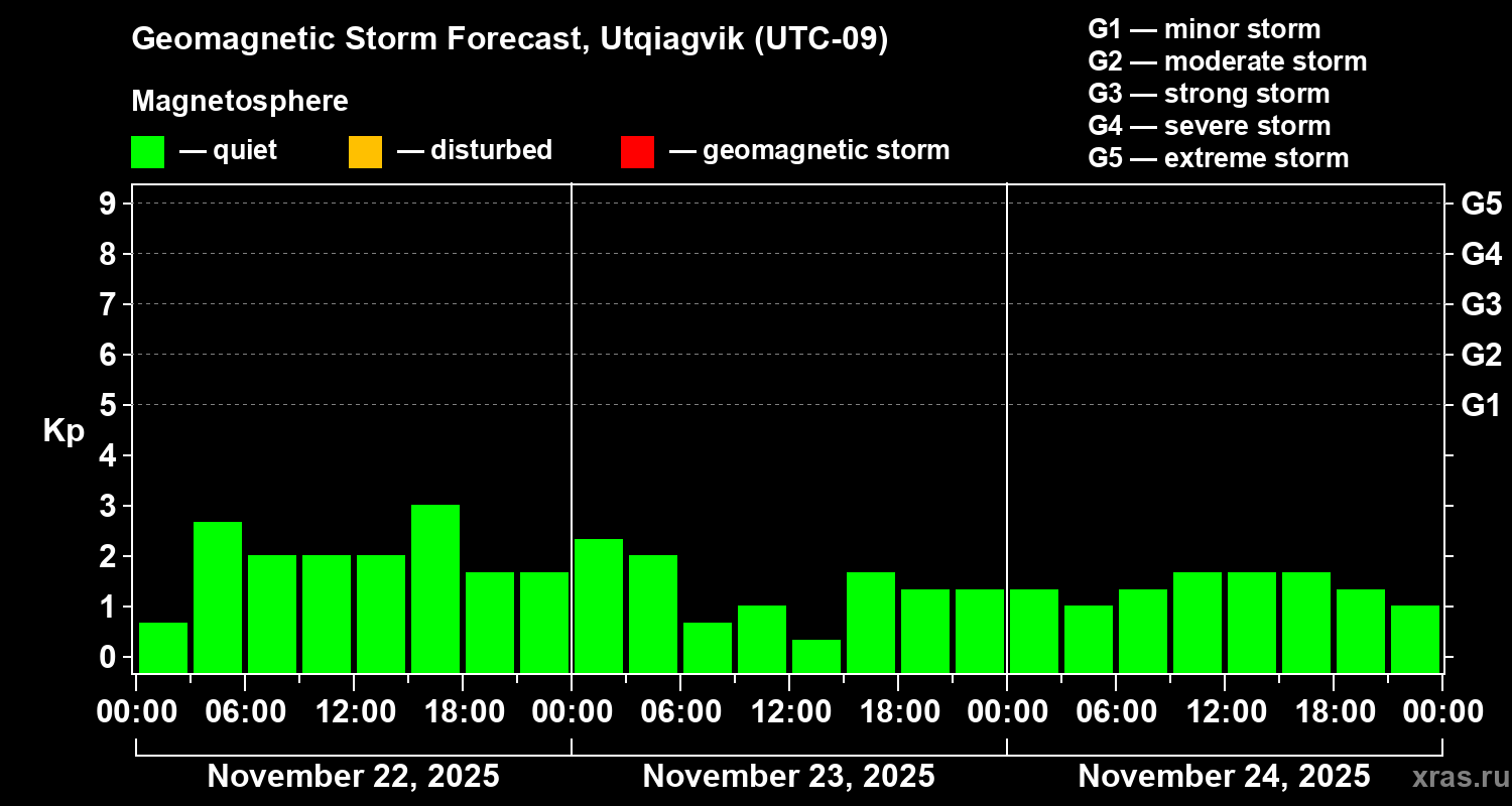 Geomagnetic storm forecast in Utqiagvik for Nov 22, 2025