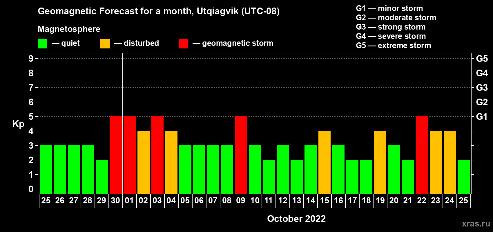 Geomagnetic storm forecast in Utqiagvik for Sep 25, 2022
