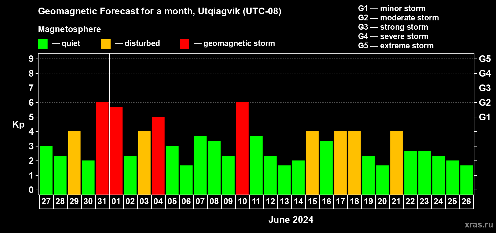 Geomagnetic storm forecast in Utqiagvik for May 27, 2024