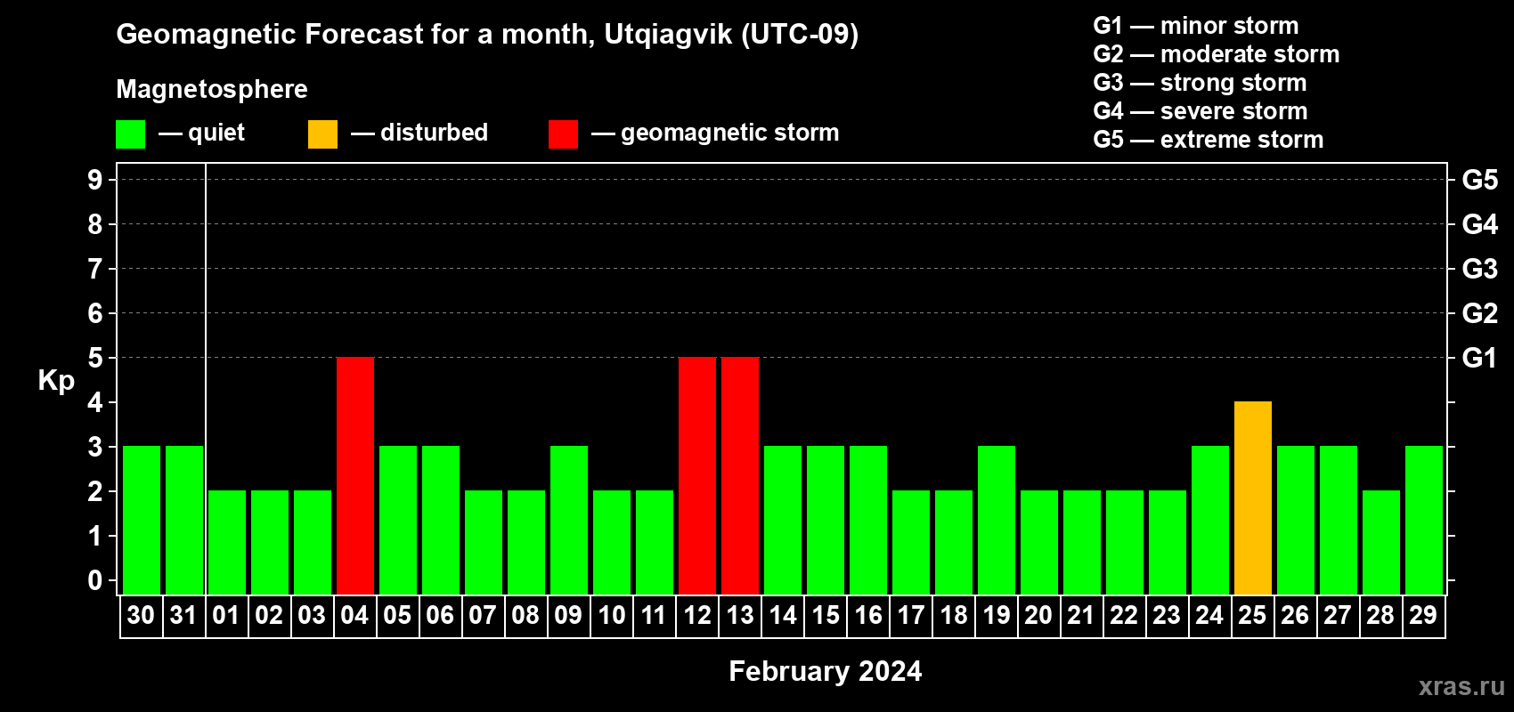 Geomagnetic storm forecast in Utqiagvik for Jan 30, 2024