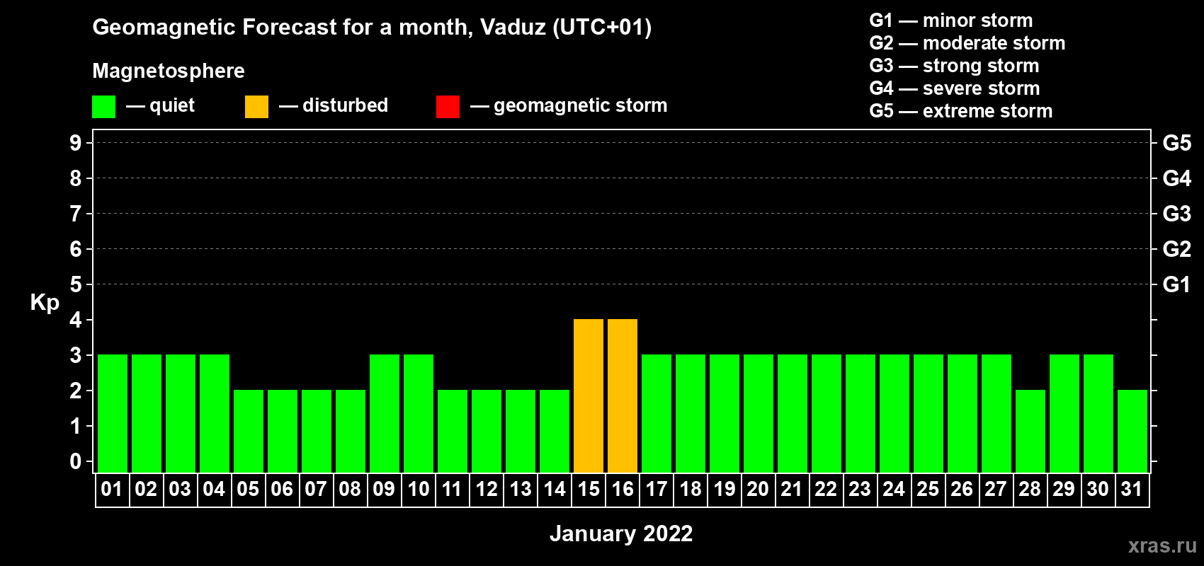 Geomagnetic storm forecast in Vaduz for Jan 01, 2022
