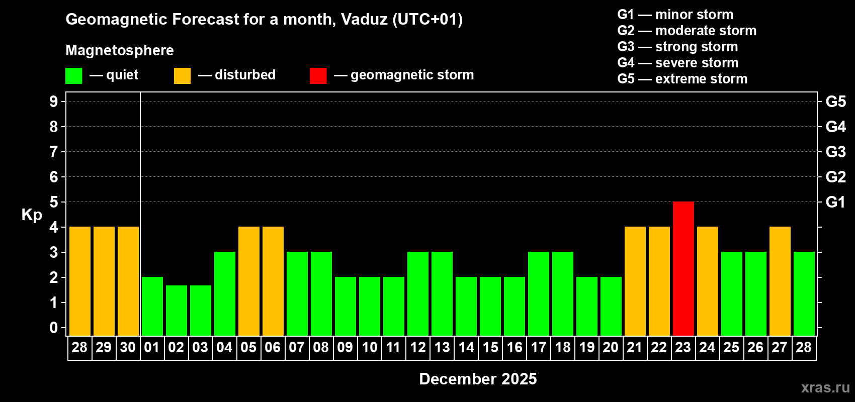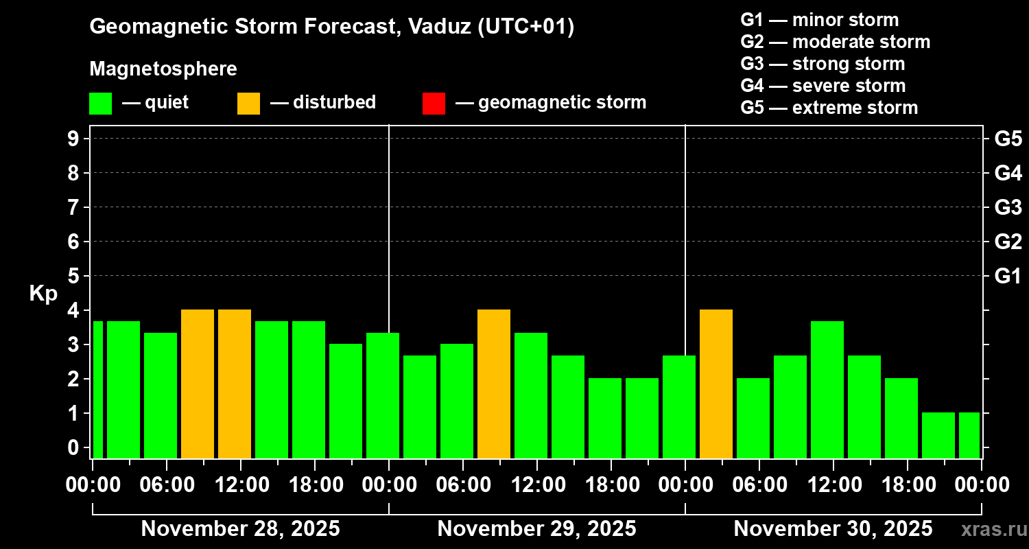 Geomagnetic storm forecast in Vaduz for Nov 28, 2025