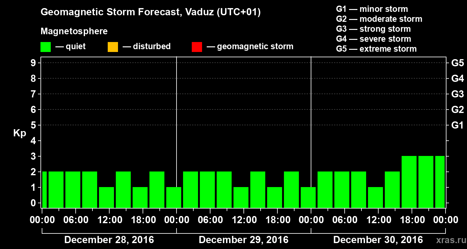 Geomagnetic storm forecast in Vaduz for Dec 28, 2016
