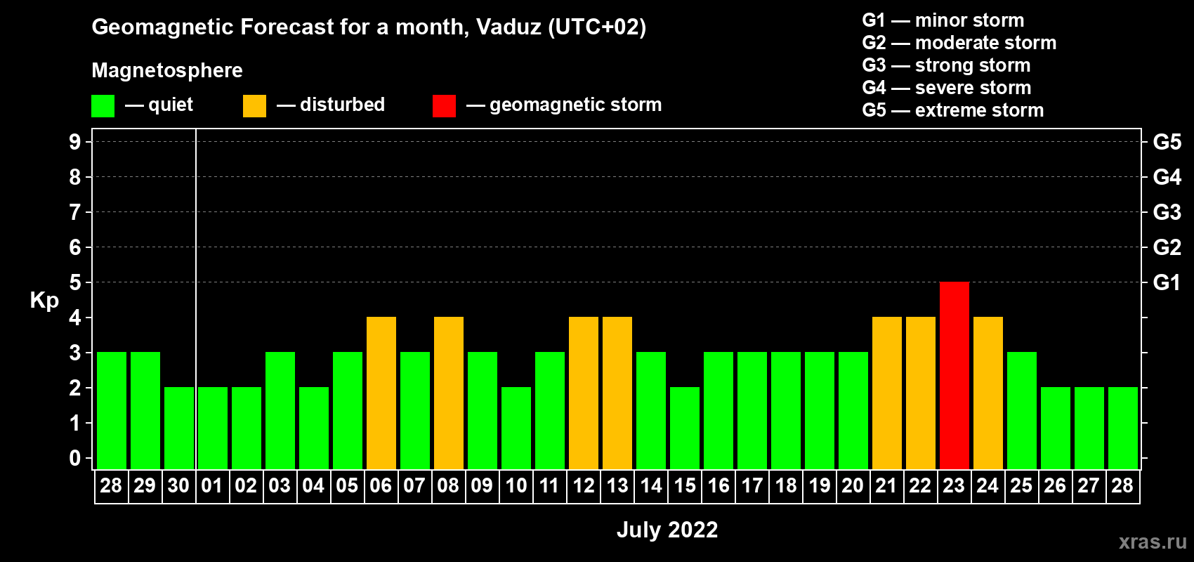 Geomagnetic storm forecast in Vaduz for Jun 28, 2022