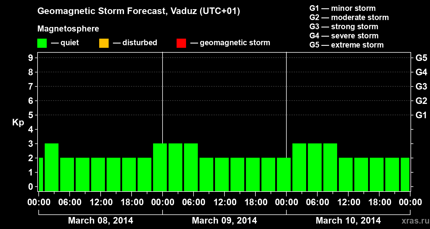 Geomagnetic storm forecast in Vaduz for Mar 08, 2014