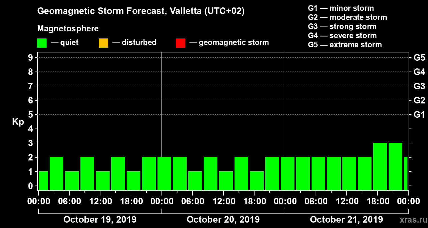 Geomagnetic storm forecast in Valletta for Oct 19, 2019
