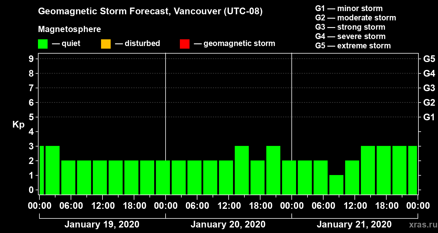 Geomagnetic activity forecast in Vancouver — Jan 19, 2020