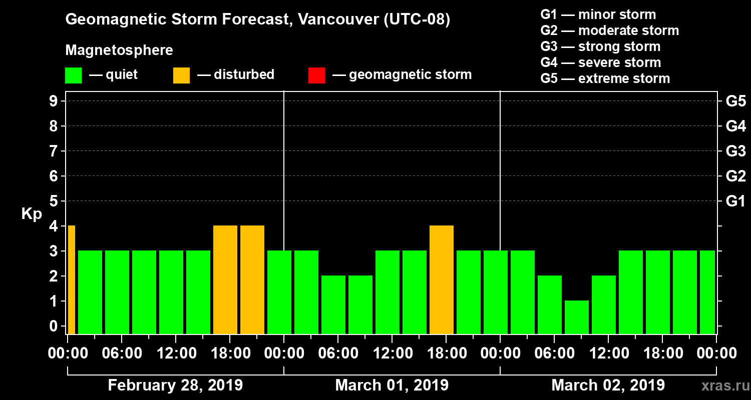 Geomagnetic activity forecast in Vancouver — Feb 28, 2019