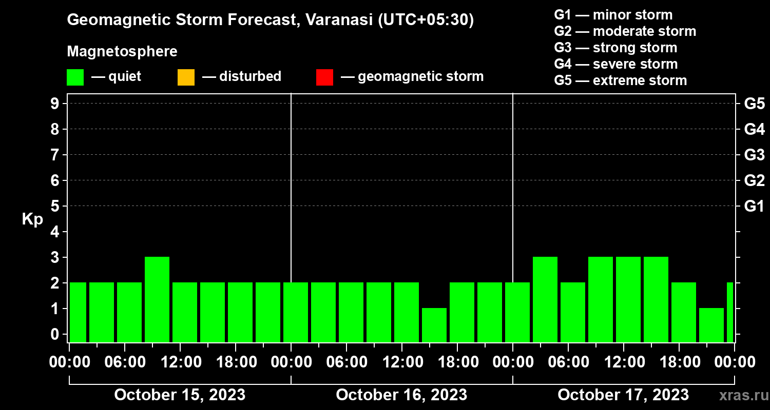 Geomagnetic activity forecast in Varanasi — Oct 15, 2023