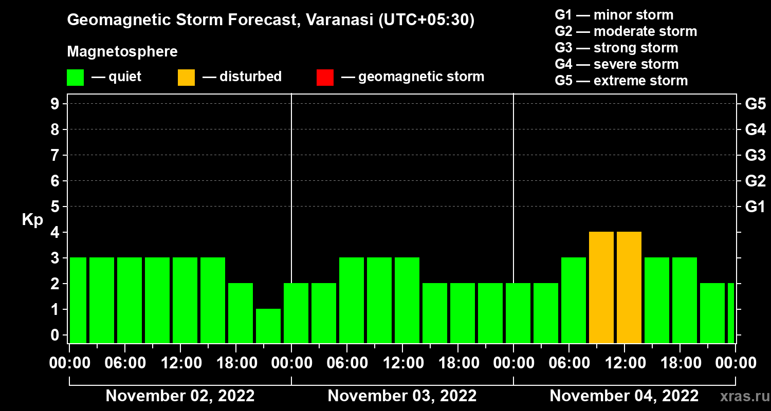 Geomagnetic storm forecast in Varanasi for Nov 02, 2022