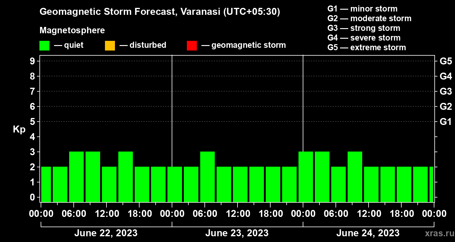 Geomagnetic storm forecast in Varanasi for Jun 22, 2023