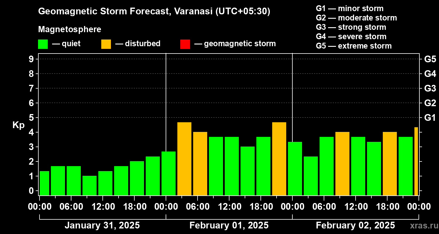 Geomagnetic storm forecast in Varanasi for Jan 31, 2025