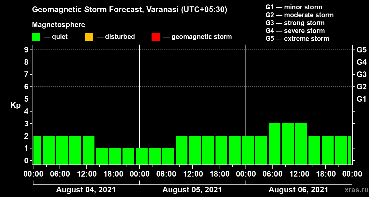 Geomagnetic storm forecast in Varanasi for Aug 04, 2021