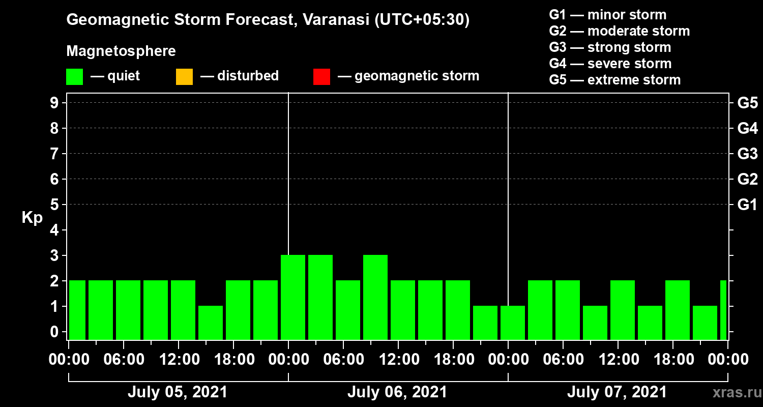 Geomagnetic storm forecast in Varanasi for Jul 05, 2021