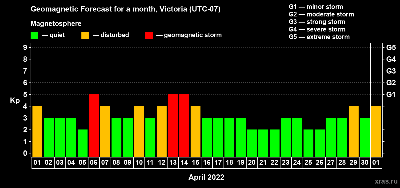 Geomagnetic storm forecast in Victoria for Apr 01, 2022