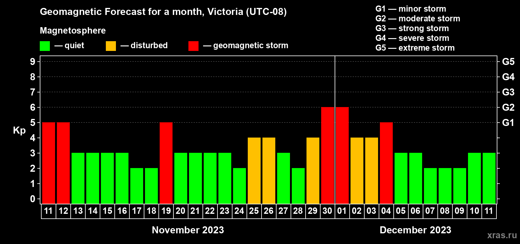 Geomagnetic storm forecast in Victoria for Nov 11, 2023