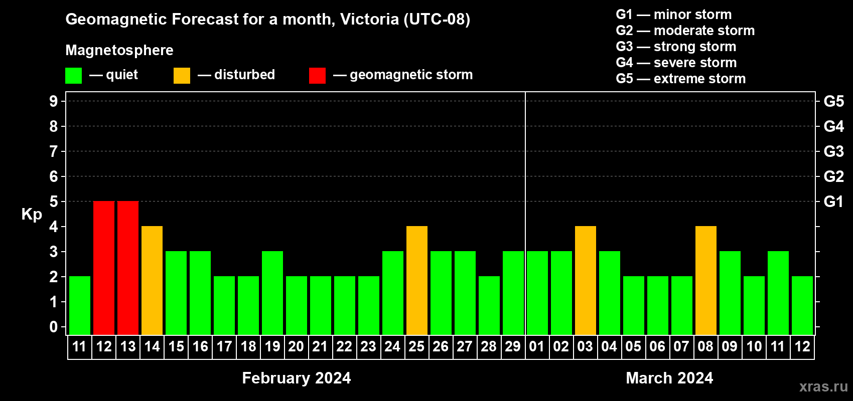 Geomagnetic storm forecast in Victoria for Feb 11, 2024