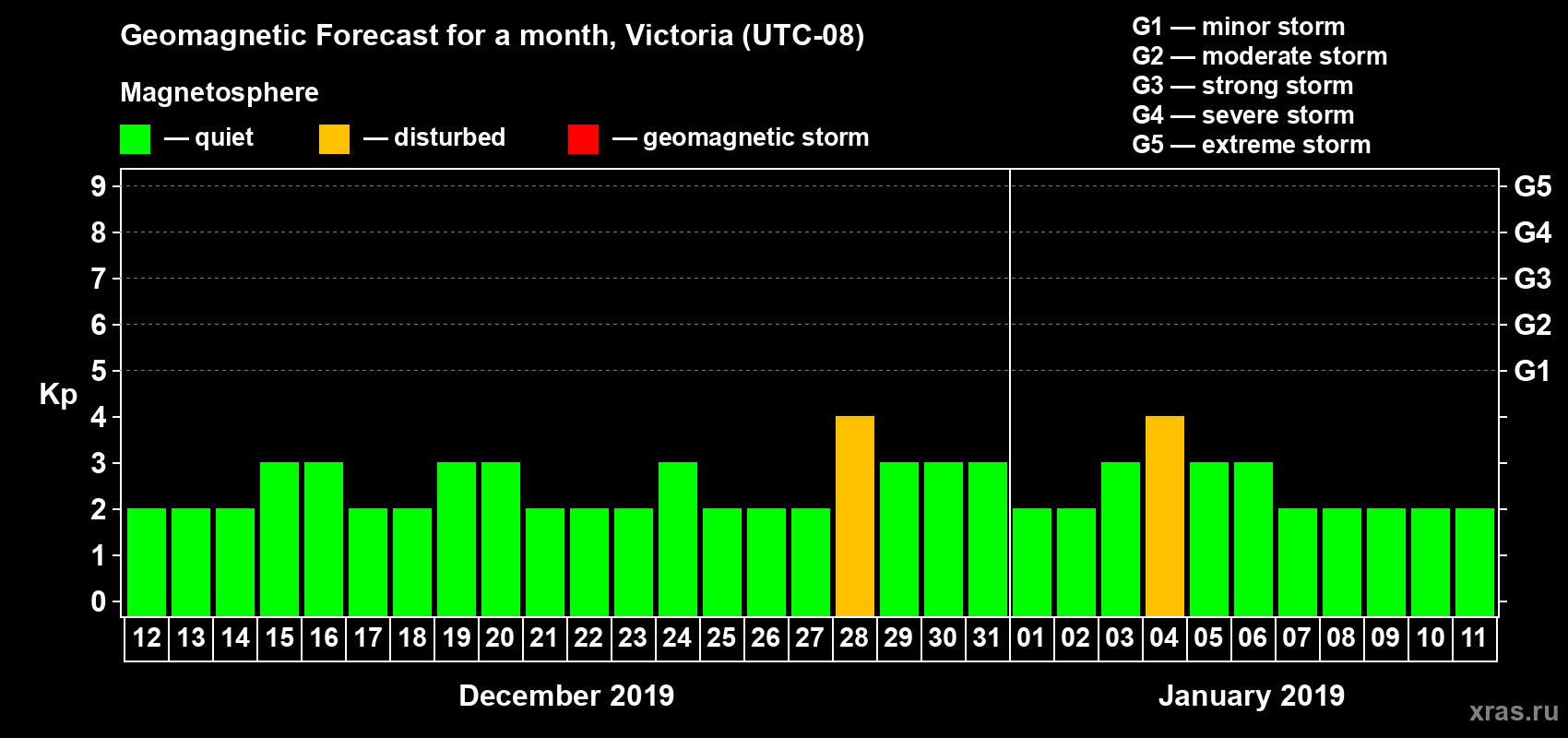 Geomagnetic storm forecast in Victoria for Dec 12, 2018